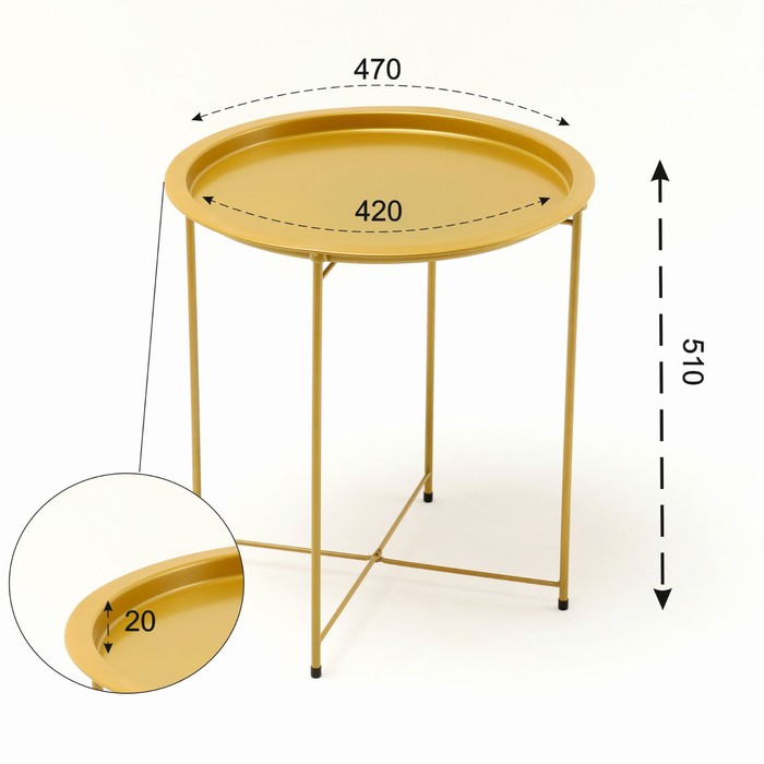 Столик журнальный «Клик Мебель», с подносом, 470×470×510 мм, цвет золотой — Характеристики