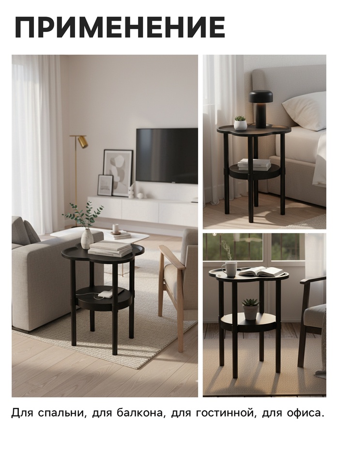 Предмет мебели, сочетающий компактность и функциональность. Столик имеет два яруса для удобного хранения книг, журналов, пультов и других мелочей. Верхняя поверхность оборудована бортиком, предотвращающим падение предметов.
