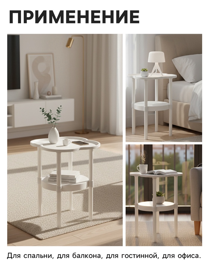 Предмет мебели, сочетающий компактность и функциональность. Столик имеет два яруса для удобного хранения книг, журналов, пультов и других мелочей. Верхняя поверхность оборудована бортиком, предотвращающим падение предметов.