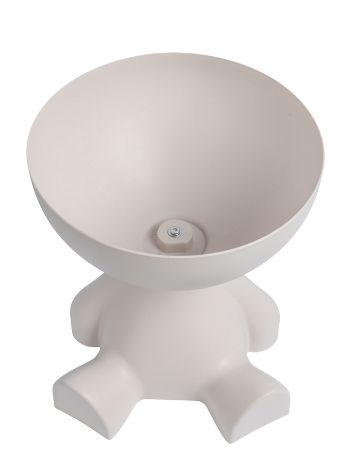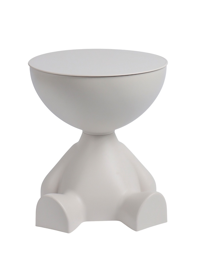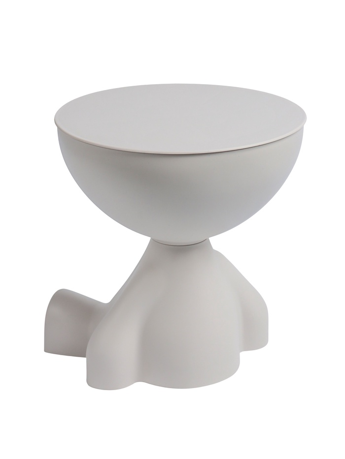 Столик в минималистичном стиле с элементами абстракции. Основание напоминает фигуру сидящего человека с плавными обтекаемыми линиями, создавая художественную выразительность. Чашеобразная верхняя часть выполняет функцию столешницы и одновременно служит местом для хранения мелких предметов — книг, журналов или декоративных элементов.