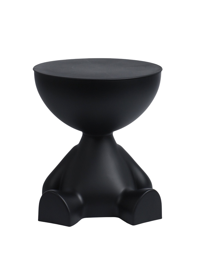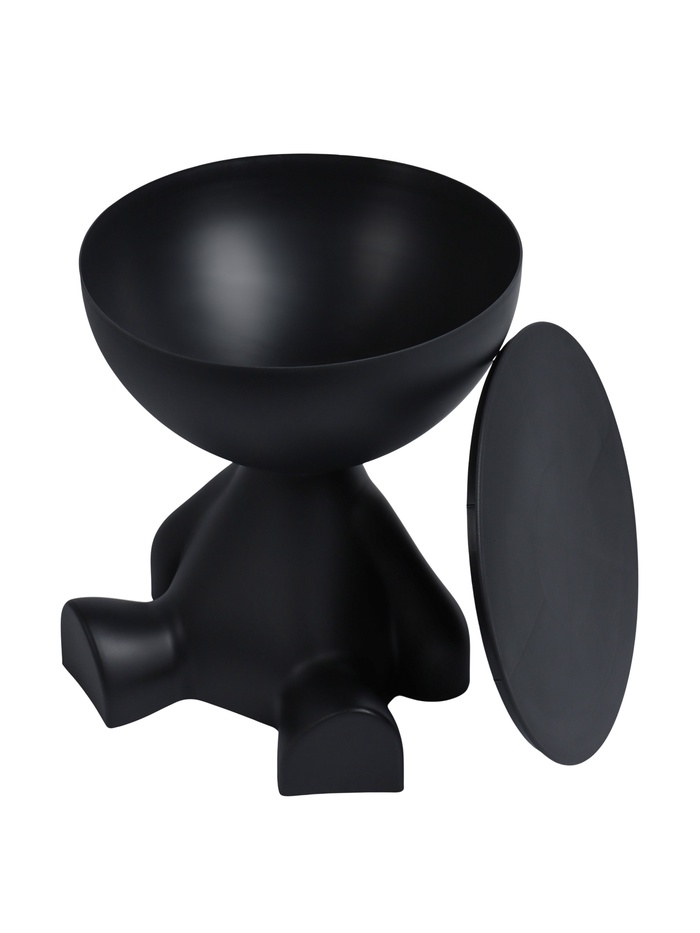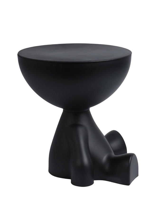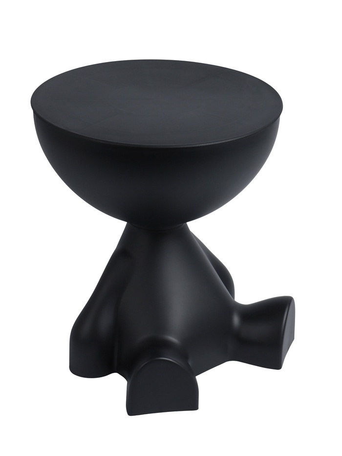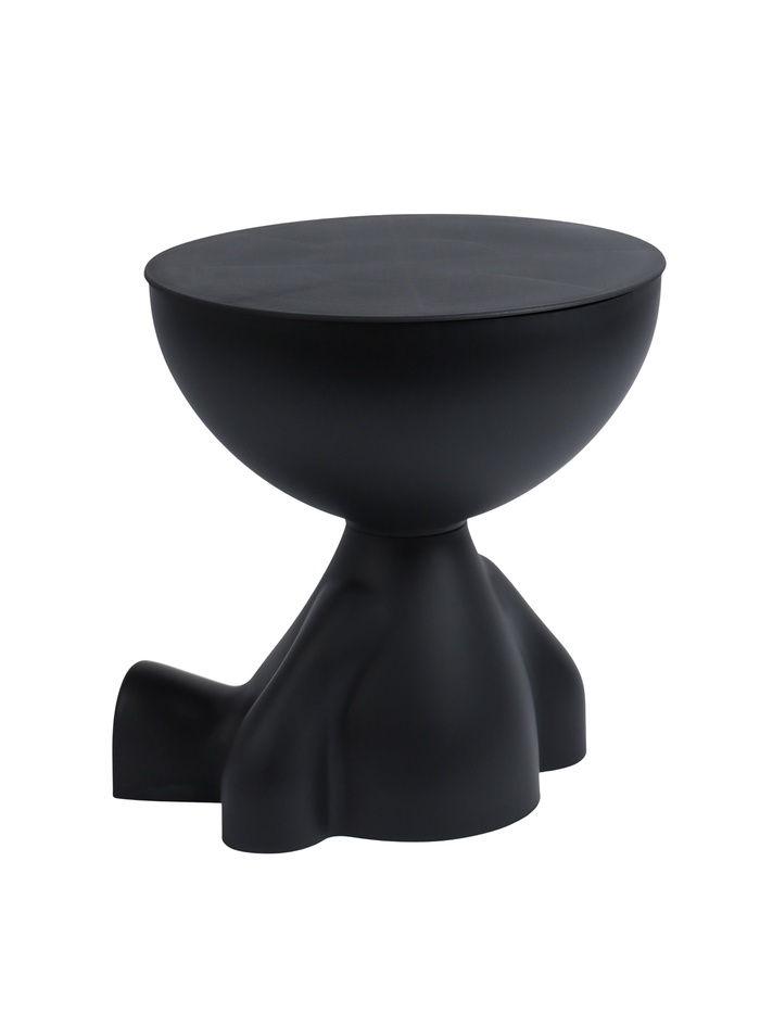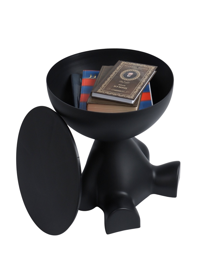 Столик в минималистичном стиле с элементами абстракции. Основание напоминает фигуру сидящего человека с плавными обтекаемыми линиями, создавая художественную выразительность. Чашеобразная верхняя часть выполняет функцию столешницы и одновременно служит местом для хранения мелких предметов — книг, журналов или декоративных элементов.