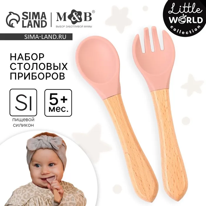 Столовые приборы детские, вилка и ложка M&B, силикон, бамбук — Характеристики