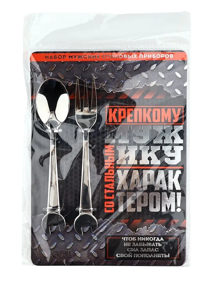 Для особых случаев — особый подарок. Столовые приборы «Крепкому мужику»: ложка и вилка может украсить ваше чаепитие, обед или ужин, сделать каждую встречу неповторимой.