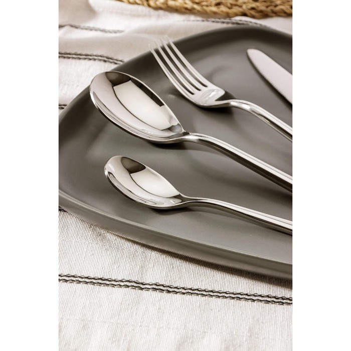 Столовые приборы Magistro «Джентри» имеют простую утонченную форму с четкими линиями и глянцевую полировку. Будь то повседневная или праздничная сервировка, они будут смотреться уместно. Все предметы из набора идеально сбалансированы и эргономичны, их удобно держать в руках и приятно пользоваться. Тщательно отполированная поверхность приборов будет сохранять мягкий блеск даже при ежедневном использовании.