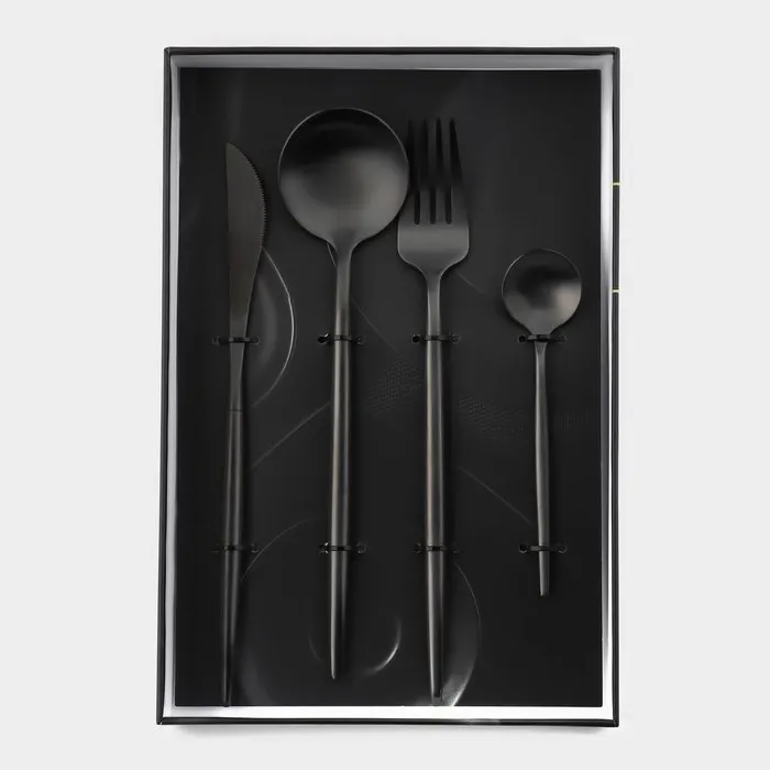 Столовые приборы Magistro «Фолк», 4 предмета, нержавеющая сталь, чёрные — Характеристики