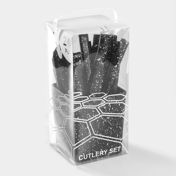 Столовые приборы на подставке «Мрамор чёрный», 24 предмета, толщина 1.2 мм, нержавеющая сталь — Характеристики