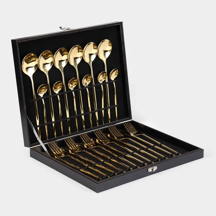 Столовые приборы «Оску», 24 предмета, в коробке, нержавеющая сталь, золотистые — Характеристики
