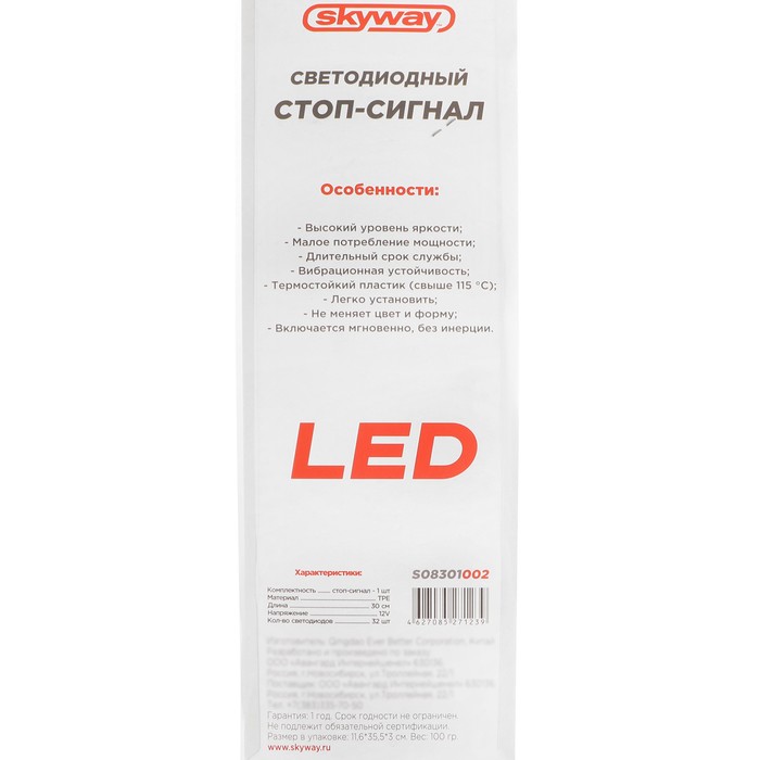 Стоп-сигнал дополнительный Skyway с 32-мя светодиодами предназначен для установки на автомобили, мотоциклы и другую технику с напряжением бортовой сети 12 вольт. Он обеспечивает яркое и эффективное освещение, что повышает безопасность движения в темное время суток и при плохой видимости. Корпус стоп-сигнала выполнен из прочных материалов, устойчивых к воздействию влаги, пыли и механических повреждений. Благодаря компактным размерам и простому монтажу, данный аксессуар легко устанавливается и не требует особых навыков или инструментов для настройки.