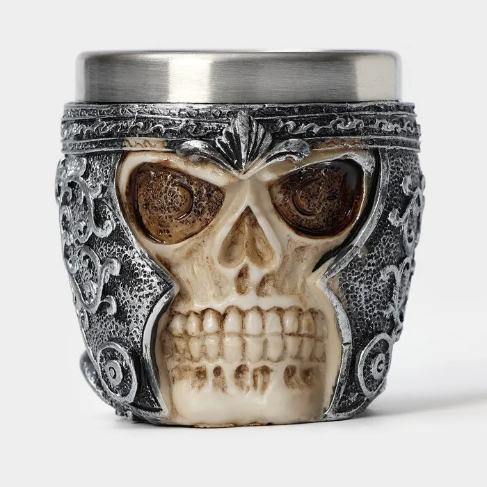 Стопка в стиле средневековья «Череп в шлеме. Хэллоуин», 70 мл, нержавеющая сталь, цвет серебряный — Характеристики