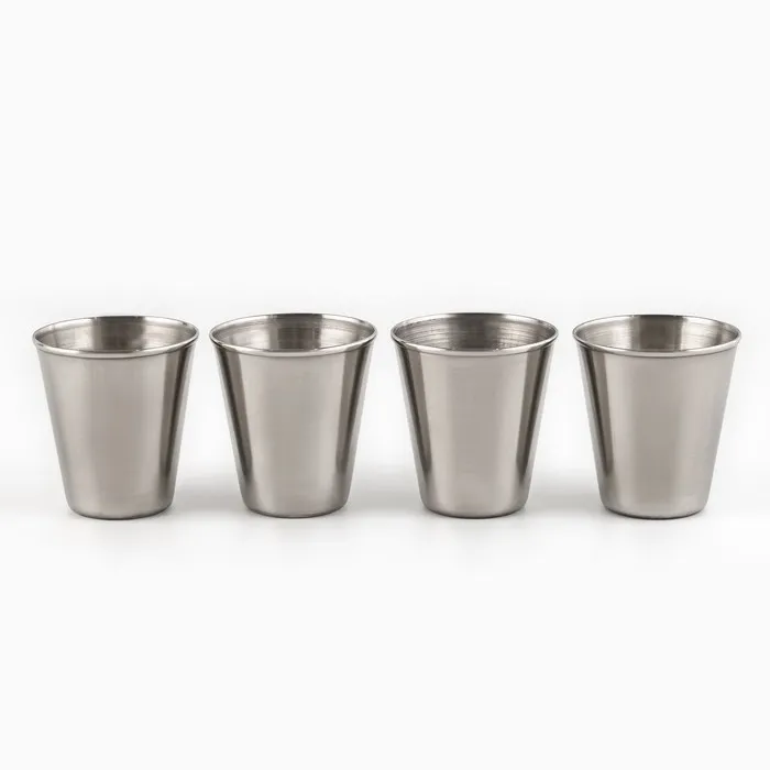 Супер прочные и стильные, эти стопки изготовлены из высокого качества 304 нержавеющей стали, они не только красиво смотрятся, но и обеспечивают долгий срок службы изделия. Легко моются и подходят для повседневного использования. Отлично заменят стеклянные рюмки и бокалы, смотрятся эффектно и стильно. Стопки не слишком высокие, удобно помещаются в руке и имеют оптимальный объем 70 мл.