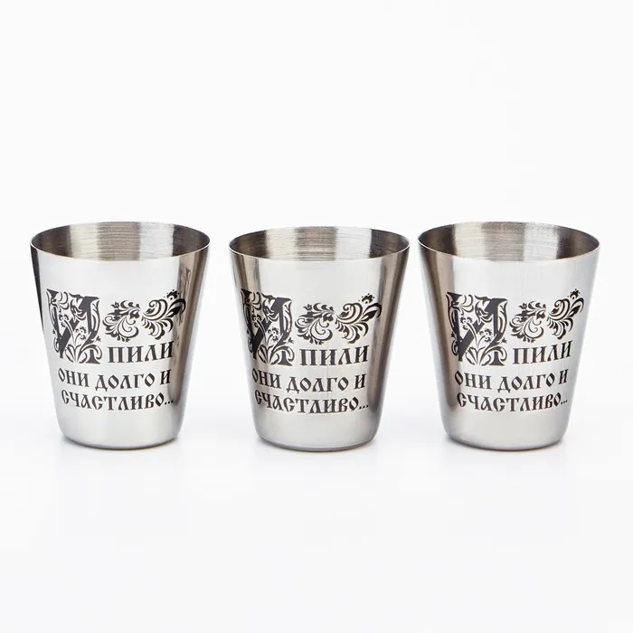 Супер прочные и стильные, эти стопки изготовлены из высокого качества 304 нержавеющей стали, они не только красиво смотрятся, но и обеспечивают долгий срок службы изделия. Легко моются и подходят для повседневного использования. Отлично заменят стеклянные рюмки и бокалы, смотрятся эффектно и стильно. Стопки не слишком высокие, удобно помещаются в руке и имеют оптимальный объем 30 мл.