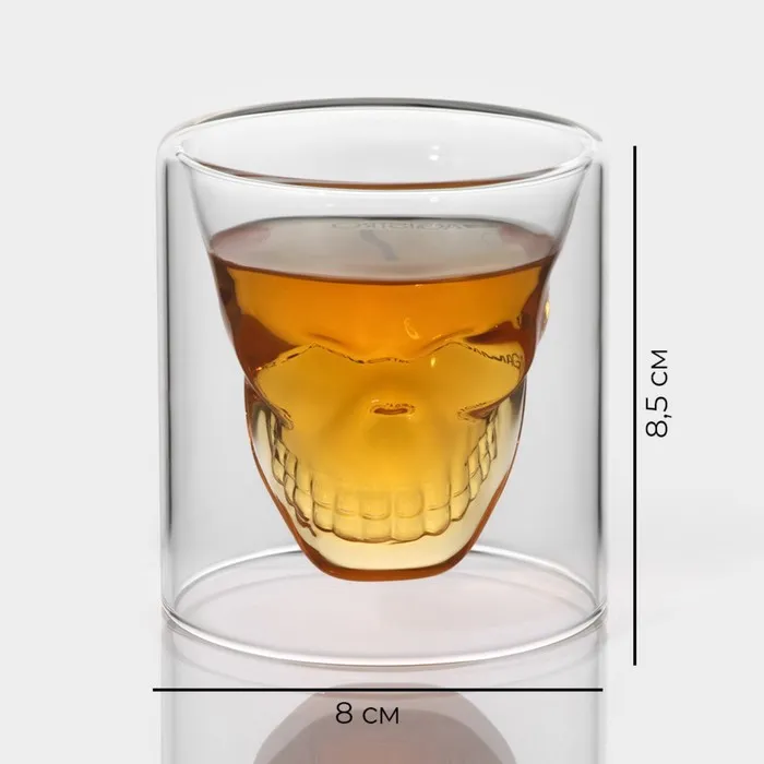 Стопки шоты Magistro «Череп», 150 мл, 8×8.5 см, с двойными стенками, набор 2 шт., стекло, прозрачный — Характеристики