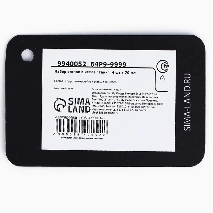 Стопки в чехле «Танк»: набор 4 шт. х 70 мл — Характеристики