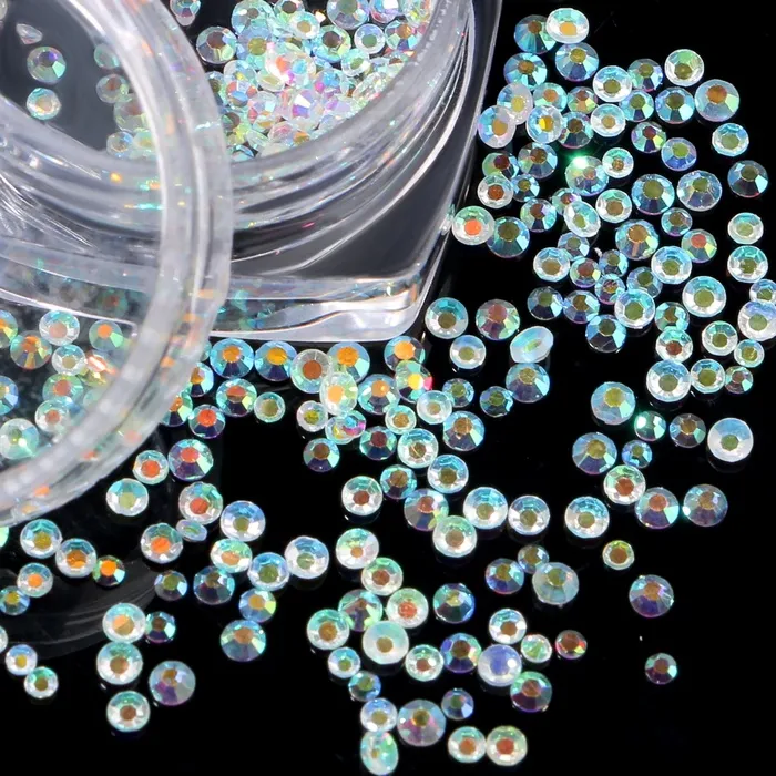 Разноразмерный стразы для декора ногтей, выглядят не менее эффектно, чем настоящие драгоценные камни — притом они просты в использовании. Размер страз от 0,3 мм до 1 мм.