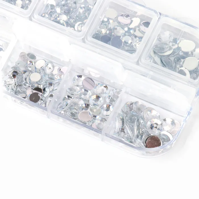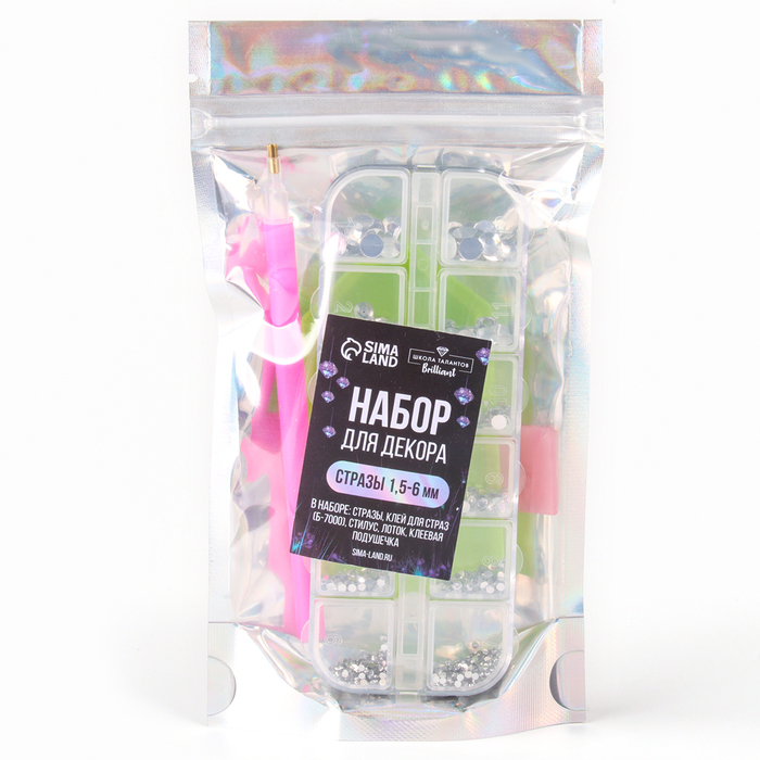 Стразы для творчества холодной фиксации с инструментами и клеем, цвет белый, размер от 1,5-6 мм, подходят для лица и ногтей — Характеристики