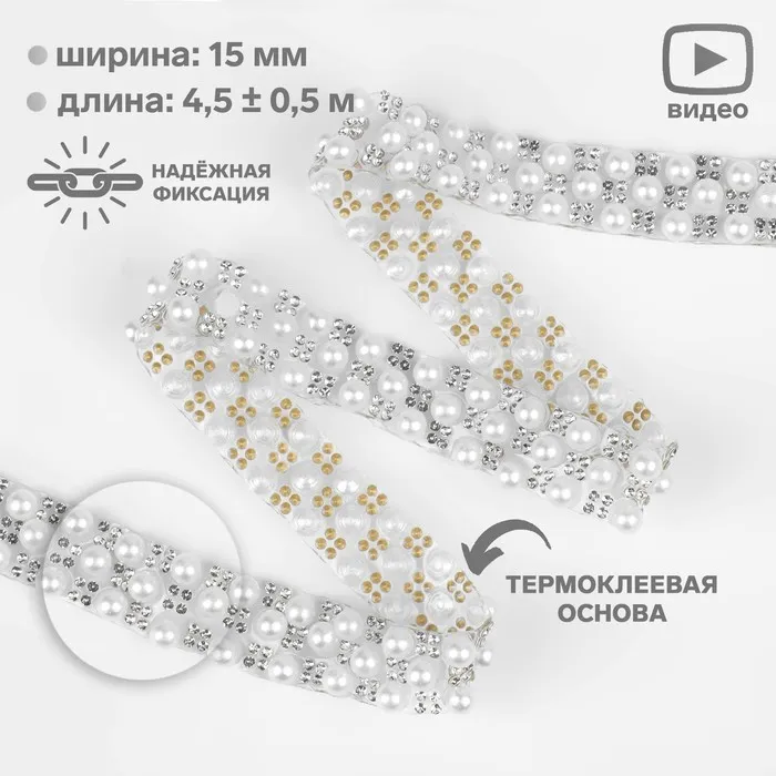 Стразы и бусины термоклеевые, ширина - 15 мм, 4,5 ± 0,5 м, цвет серебряный — Характеристики