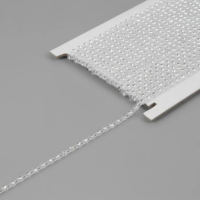 Прозрачные стразы — ненавязчивый, но выразительный элемент декора для творческих проектов и праздничного оформления. Мелкие бусины диаметром 3 мм нанизаны на прочную леску длиной около 9 метров. Под светом играют бликами, создавая эффект хрусталя.