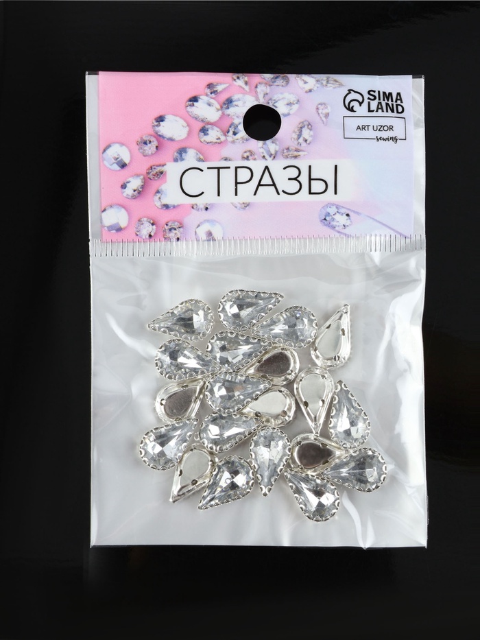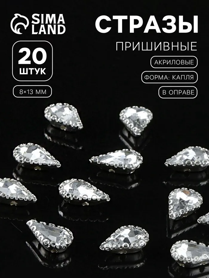 Стразы пришивные «Капля», в ажурной оправе, 8×13 мм, 20 шт., белые — Характеристики