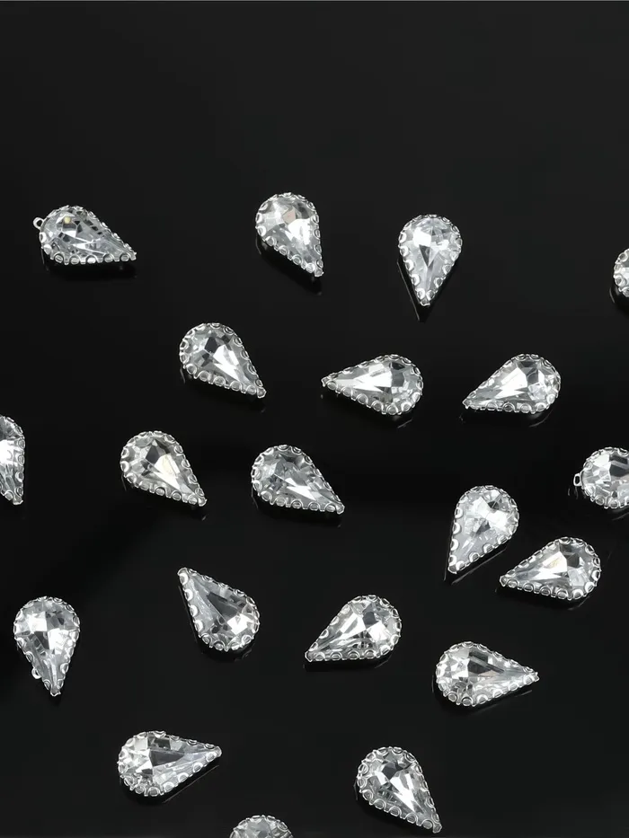 Пришивные стразы в форме капли — идеальный выбор для тех, кто ценит элегантность и надёжность в деталях. Прозрачный акрил в ажурной оправе добавляет изделиям изящный блеск без излишней вычурности. Набор включает 20 элементов, готовых стать частью вашего творчества.