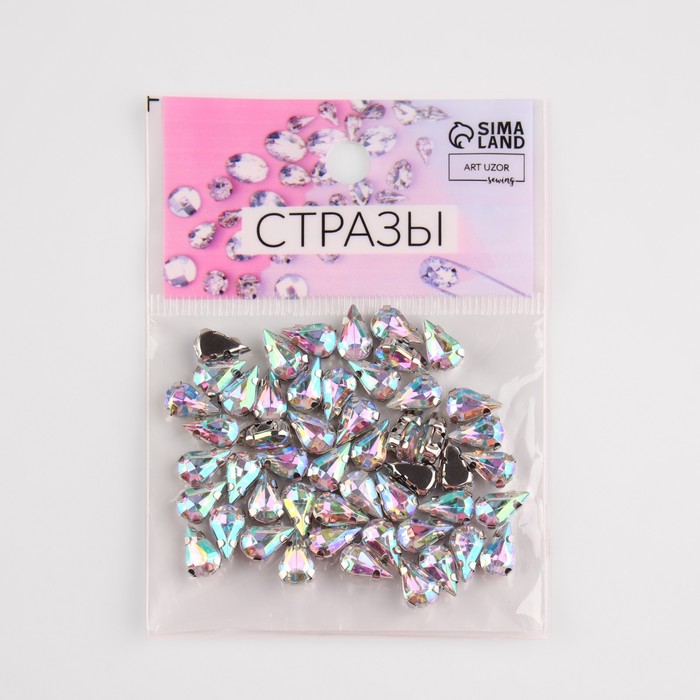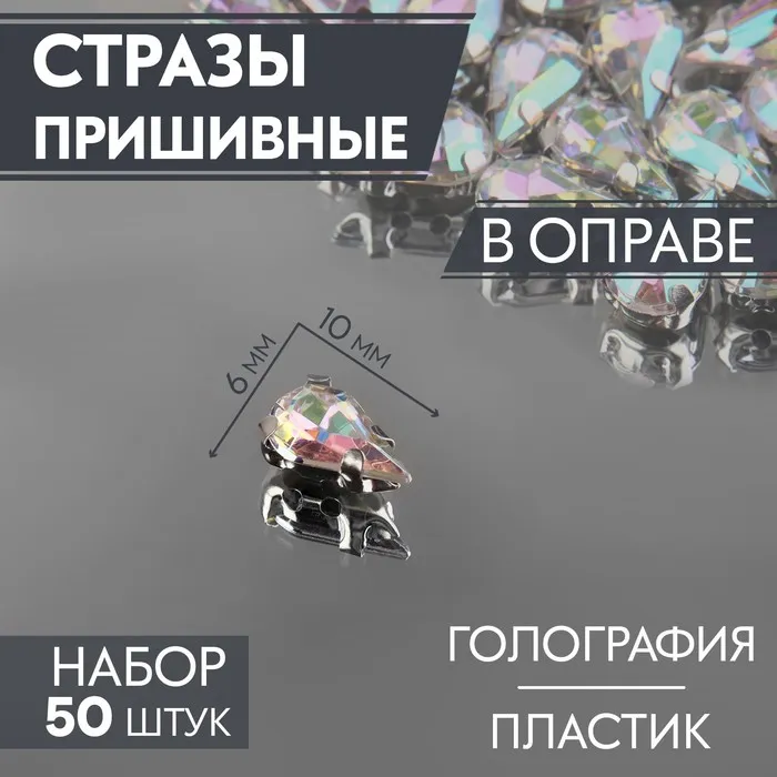 Стразы пришивные «Капля», в оправе, с голографией, 6 × 10 мм, 50 шт — Характеристики
