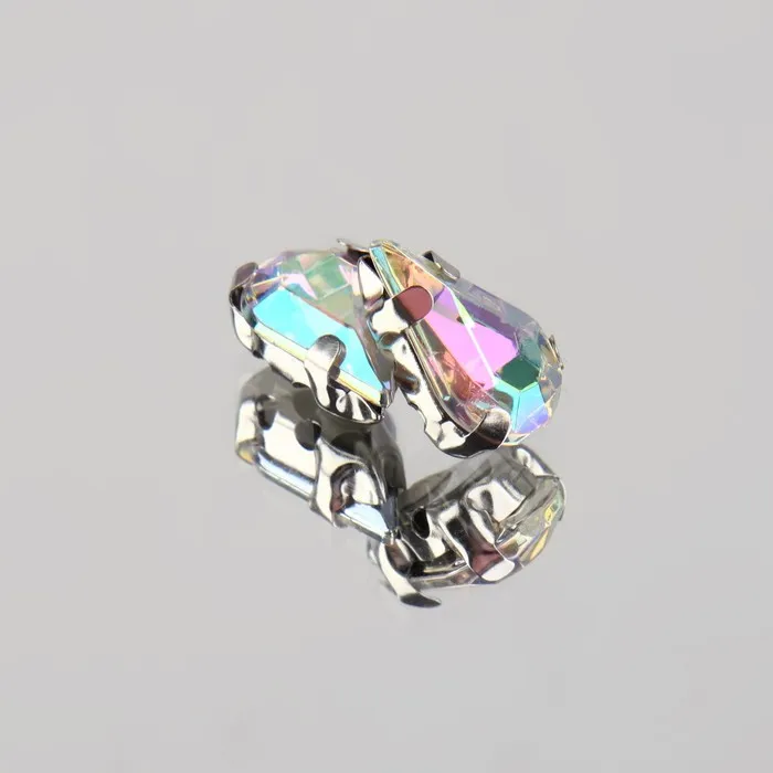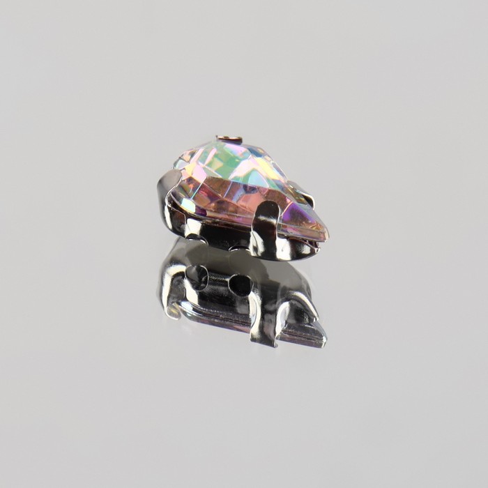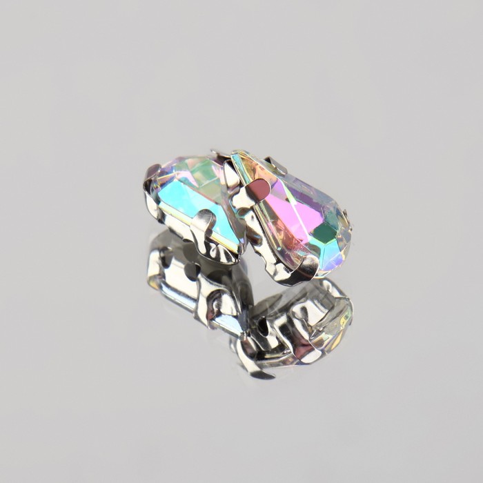 Стразы пришивные «Капля», в оправе, с голографией, 6 × 10 мм, 50 шт