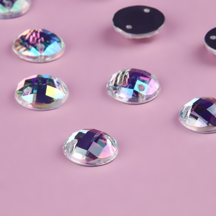 Стразы пришивные «Шатон», круглые, из органического стекла, с голографией, d=10 мм, 50 шт.