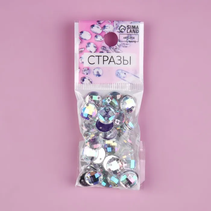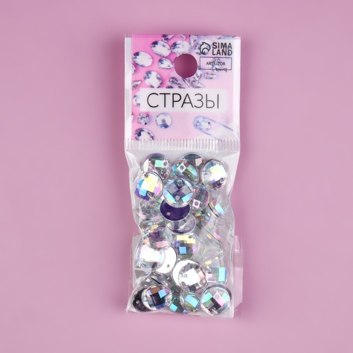 Стразы пришивные «Шатон», круглые, из органического стекла, с голографией, d=10 мм, 50 шт. — Характеристики