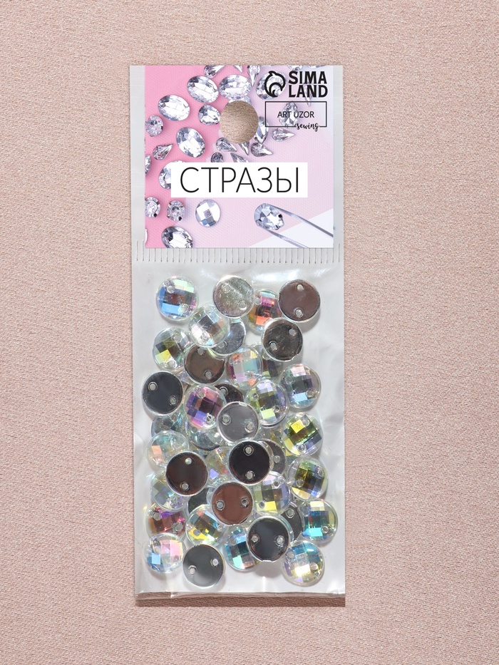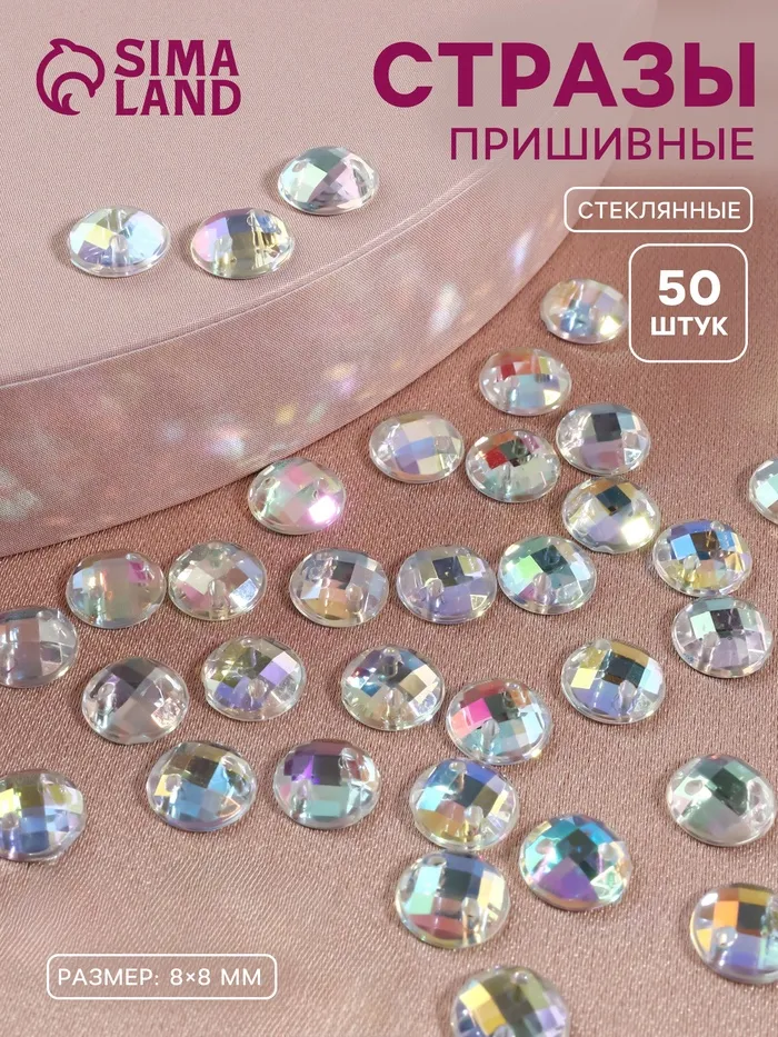 Стразы пришивные «Шатон», круглые, из органического стекла, с голографией, d=8 мм, 50 шт. — Характеристики