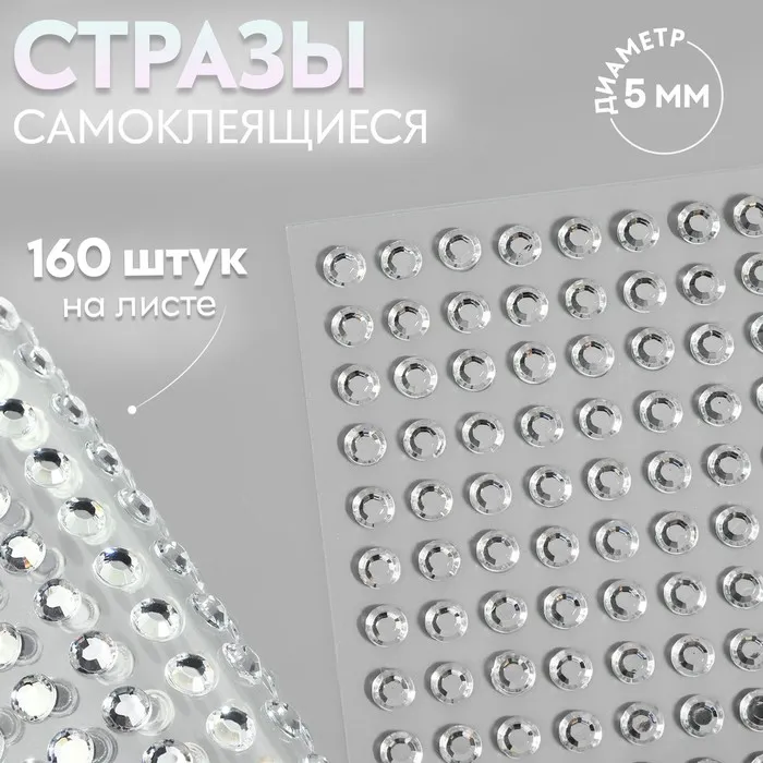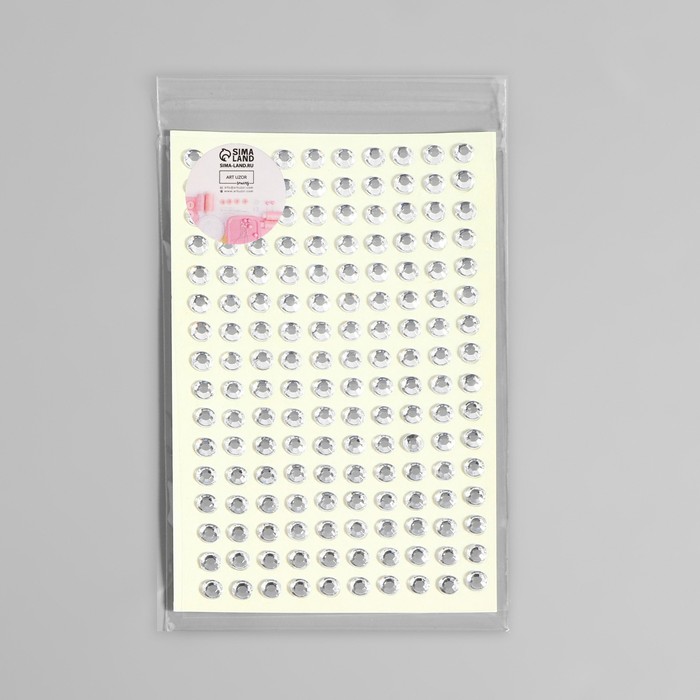 Стразы самоклеящиеся, d = 5 мм, 160 шт на листе на листе, цвет серебряный — Характеристики