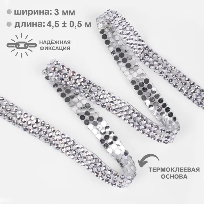 Стразы термоклеевые, d=3×10 мм, 4.5±0.5 м, цвет серебряный — Характеристики