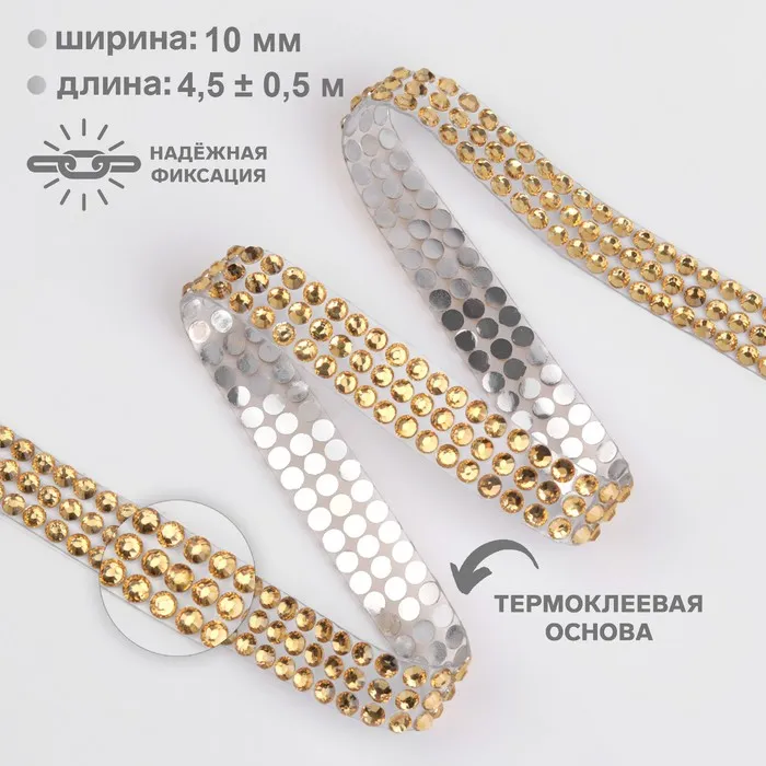 Стразы термоклеевые, d=3×10 мм, 4.5±0.5 м, цвет золотой — Характеристики