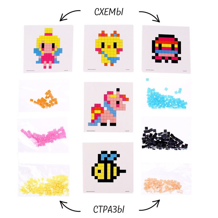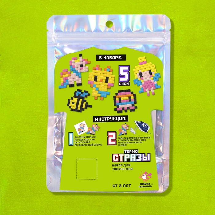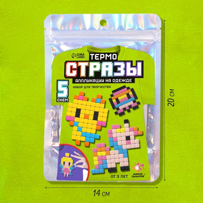 Стразы термоклеевые для ткани с трафаретами «Пиксели», набор для творчества — Характеристики