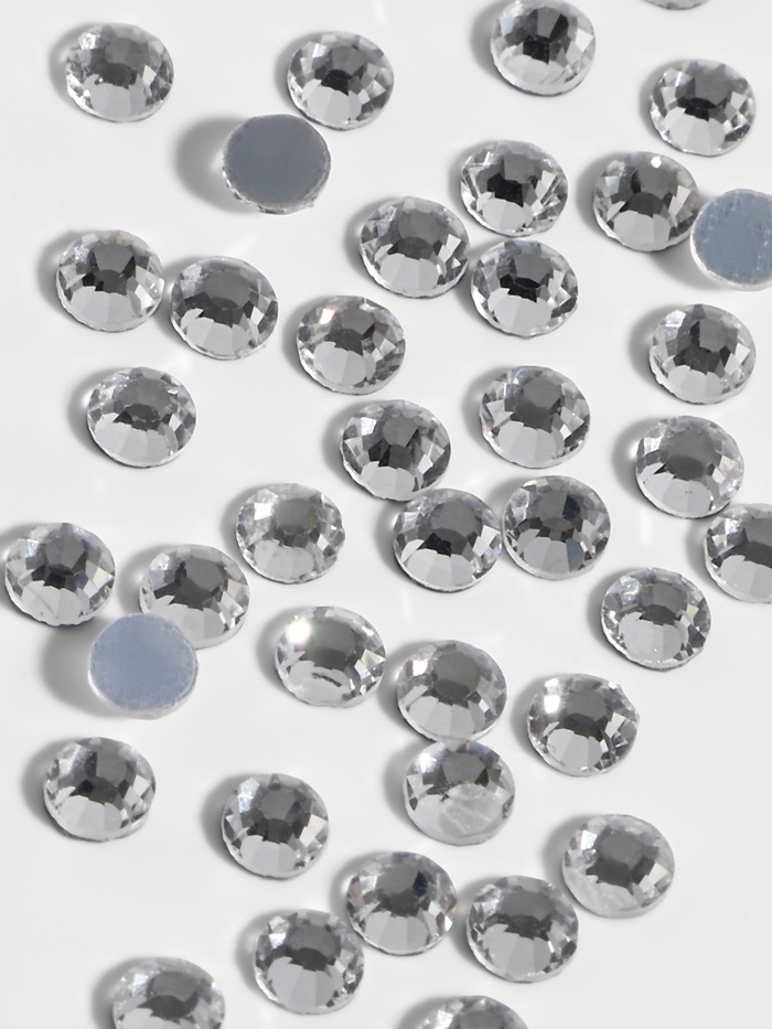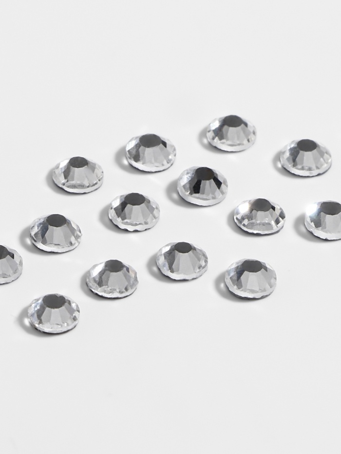 - Стеклянная основа: Стразы отражают свет лучше пластиковых аналогов, создавая глубокий серебристый блеск. Материал не мутнеет со временем, сохраняя первоначальный вид.