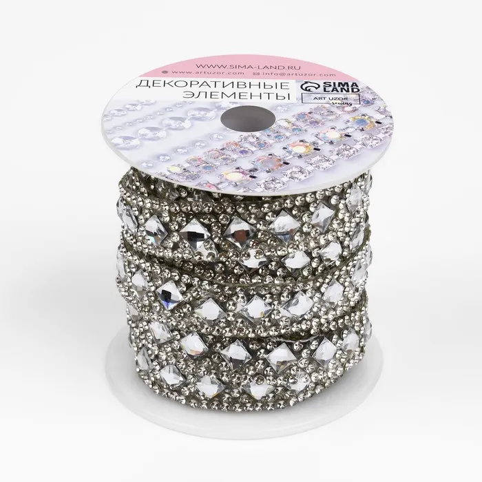 Стразы термоклеевые «Квадрат», ширина - 13 мм, 4,5 ± 0,5 м, цвет серебряный — Характеристики