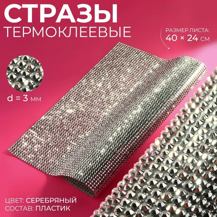 Стразы термоклеевые на листе, d=3 мм, 40×24 см, цвет серебряный — Характеристики