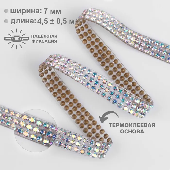 Стразы термоклеевые, с голографией, d=2×7 мм, 4.5±0.5 м, цвет серебряный — Характеристики