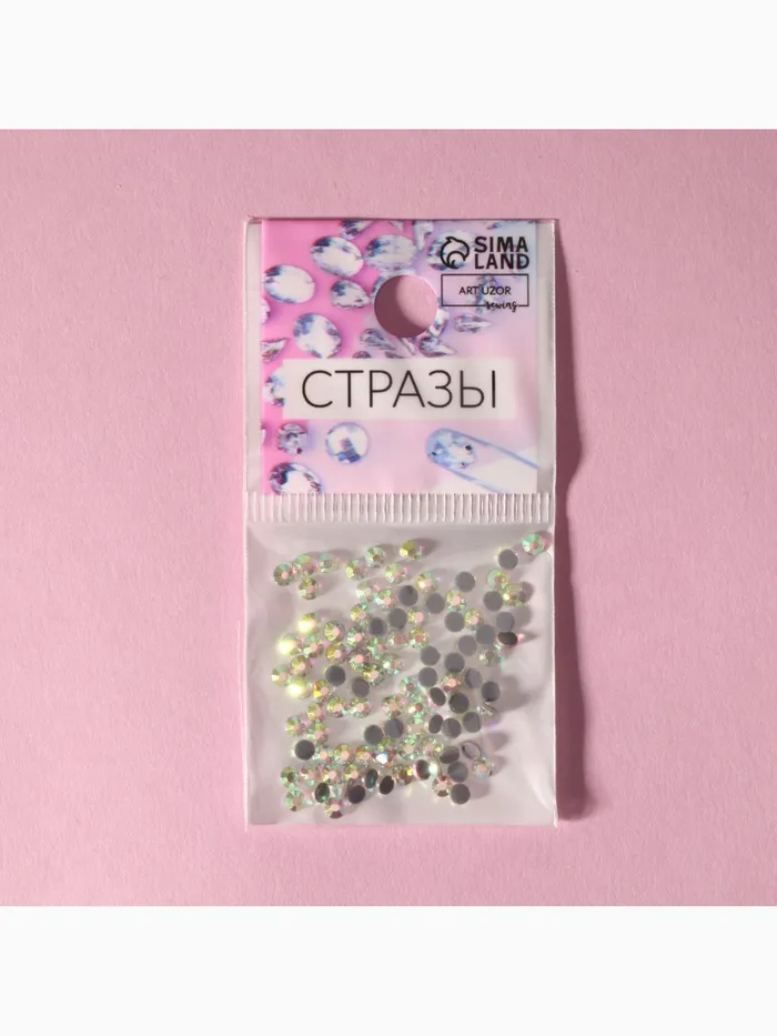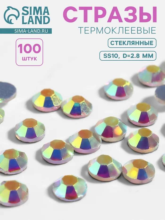 - В наборе 100 штук стеклянных голографических страз диаметром 2.8 мм.