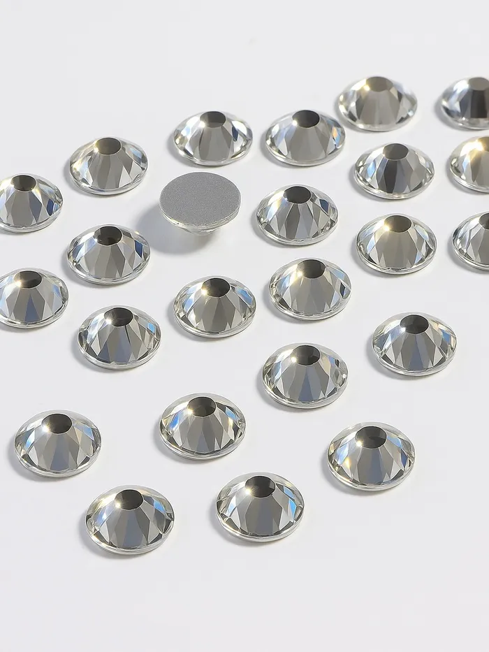 Стразы создают эффектную 3D-текстуру на плоских поверхностях. Используйте их как центральные элементы в маникюрном дизайне, для декора вечерних аксессуаров или украшения интерьерных предметов. Крупный размер особенно удобен для работы — элементы легко брать и размещать пинцетом.