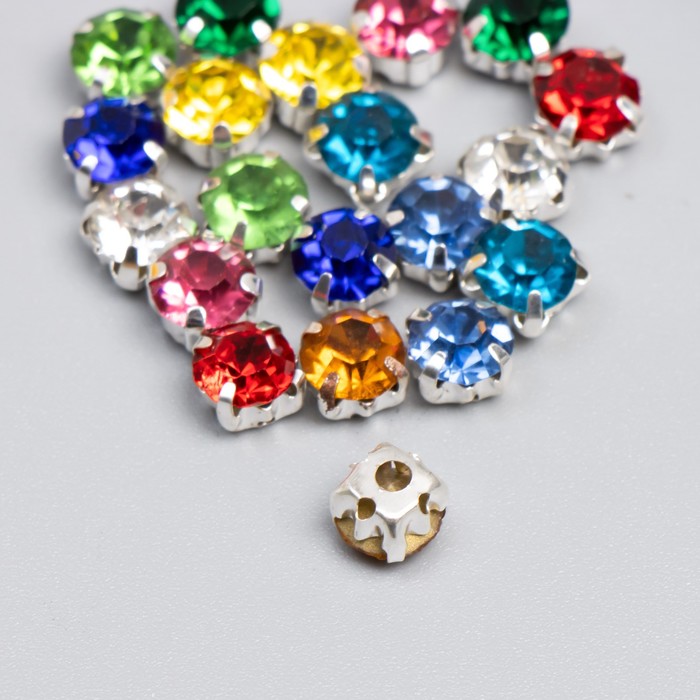 Стразы в цапах круглые 6 мм (20 шт.), оправа серебро, МИКС — Характеристики