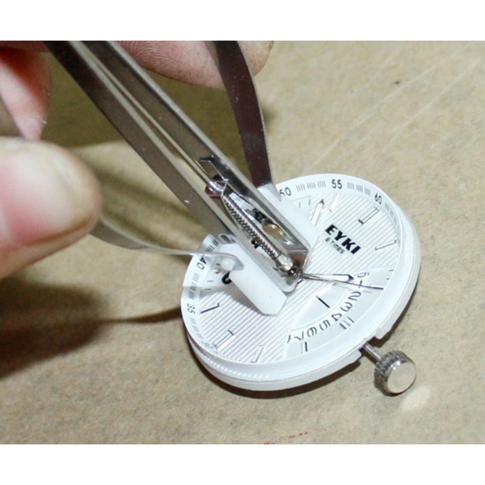 Стрелкосъемник - это незаменимый инструмент для часовых мастеров и любителей, который позволяет быстро и легко снимать стрелки с наручных часов, без риска их повреждения. Он изготовлен из качественного пластика и стали, что обеспечивает долгий срок службы и надежность в работе. Размеры стрелкосъемника составляют 9.3 х 3.8 х 1.9 см, что делает его компактным и удобным для хранения и использования. Вес инструмента всего 15 грамм, что облегчает работу с ним. Стрелкосъемник оснащен простым и надежным механизмом, который позволяет легко и аккуратно снимать стрелки часов. Для снятия стрелок необходимо поместить основание на циферблат часов так, чтобы выемка на съемнике находилась под стрелкой. Затем, нажимая на дуги съемника, можно аккуратно снять стрелку с оси. Это позволяет избежать повреждения механизма часов и сохранить точность хода.