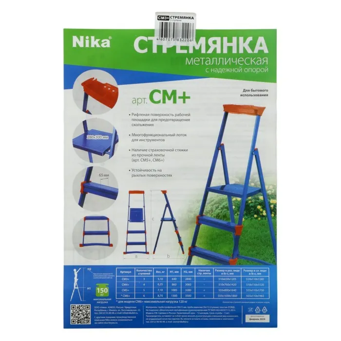 Стремянка Nika СМ3+, для рыхлых поверхностей, высота до рабочей площадки 640 мм, 3 ступени — Характеристики