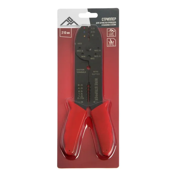 Стриппер ЛОМ, 210 мм, для зачистки проводов 0.75-6 мм и обжима клемм 1.5-6 мм — Характеристики