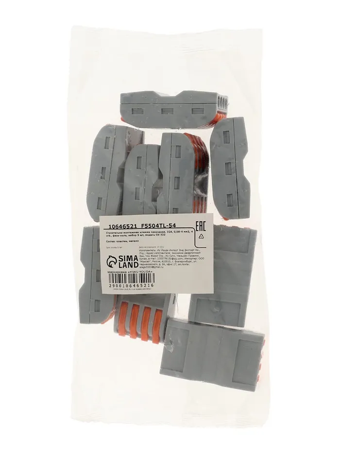 Строительно-монтажная клемма проходная, 32А, 0,08-4 мм2, 4 отв., фаза-ноль, набор 10 шт — Характеристики