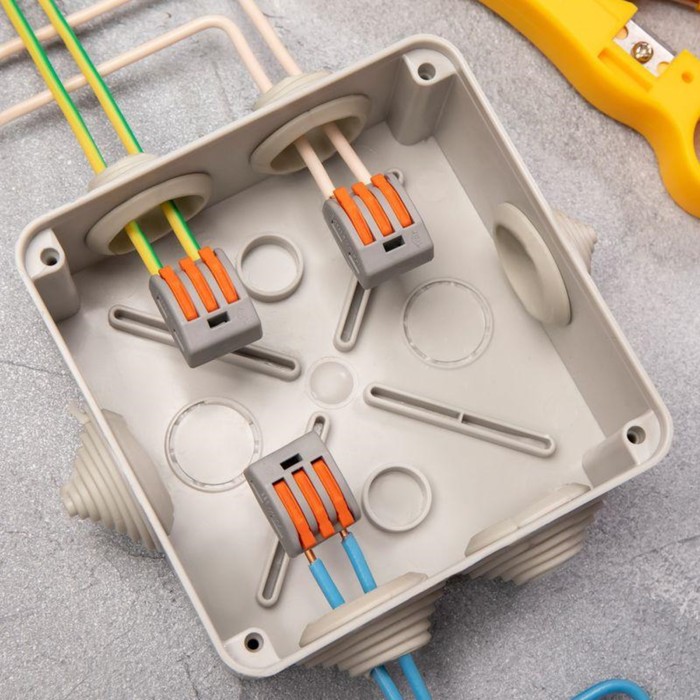 Строительно-монтажная клеммы предназначены для соединения проводников. Пружинные зажимы клемм обеспечивают надежный и долговечный контакт. Преимуществом строительно-монтажных клемм перед другими видами электрических соединений является простота монтажа и надежная защита от контакта с токоведущими частями. Изделие подойдёт для соединения проводов с диаметром сечения 0,08-2,5 мм².