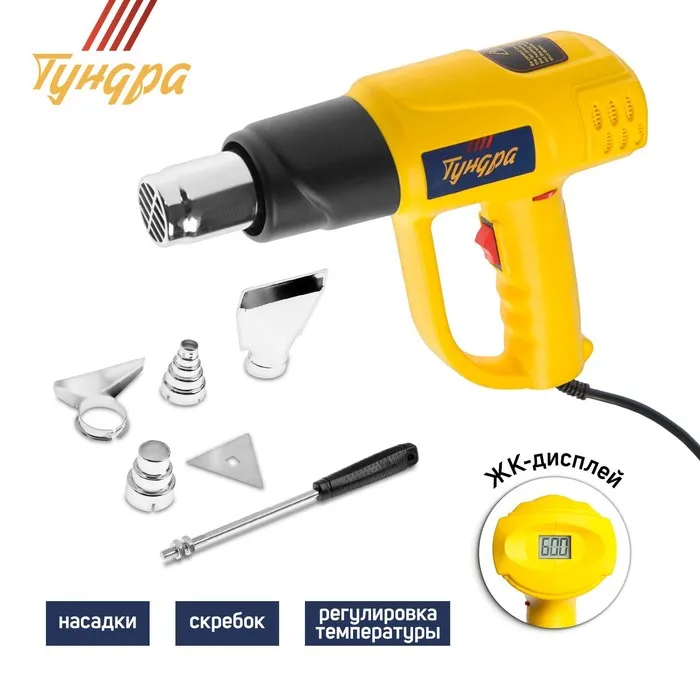 Строительный фен ТУНДРА применяется для обработки поверхностей горячим воздухом.