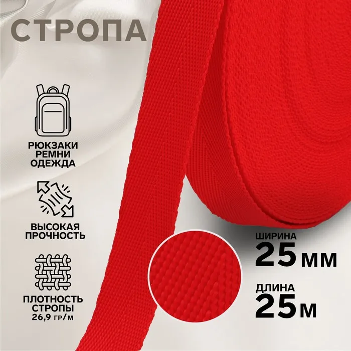 Стропа, 25 мм, 25 м, цвет красный — Характеристики