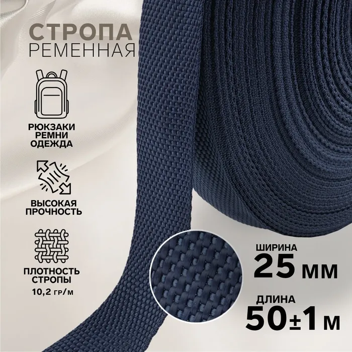 Стропа ременная, 25 мм, 50±1 м, плотность 10.2 гр/м, тёмно-синяя №30