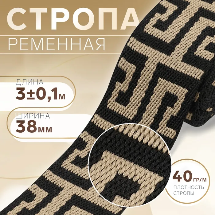 Стропа ременная, 38 мм, 3±0.1 м, чёрно-бежевая