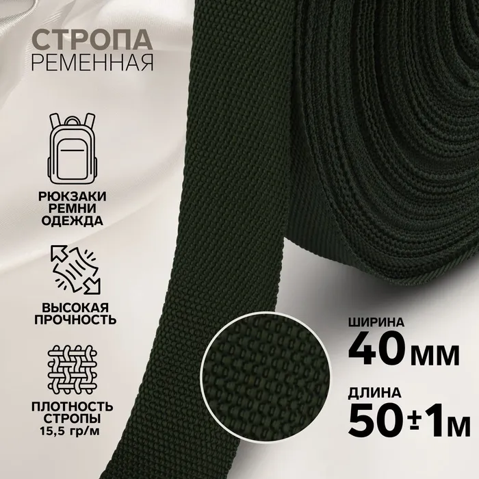 Стропа ременная, 40 мм, 50±1 м, плотность 15.5 гр/м, хаки №36 — Характеристики