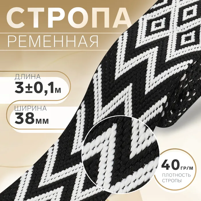 Стропа ременная «Ромбы и зигзаги», 38 мм, 3±0.1 м, чёрно-белая — Характеристики